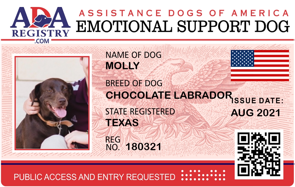 Emotional Support Dog Registration for Molly