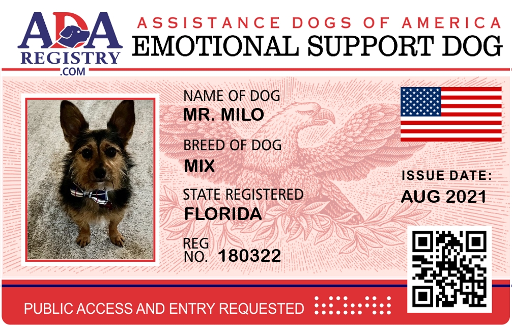 Emotional Support Dog Registration for Mr. Milo
