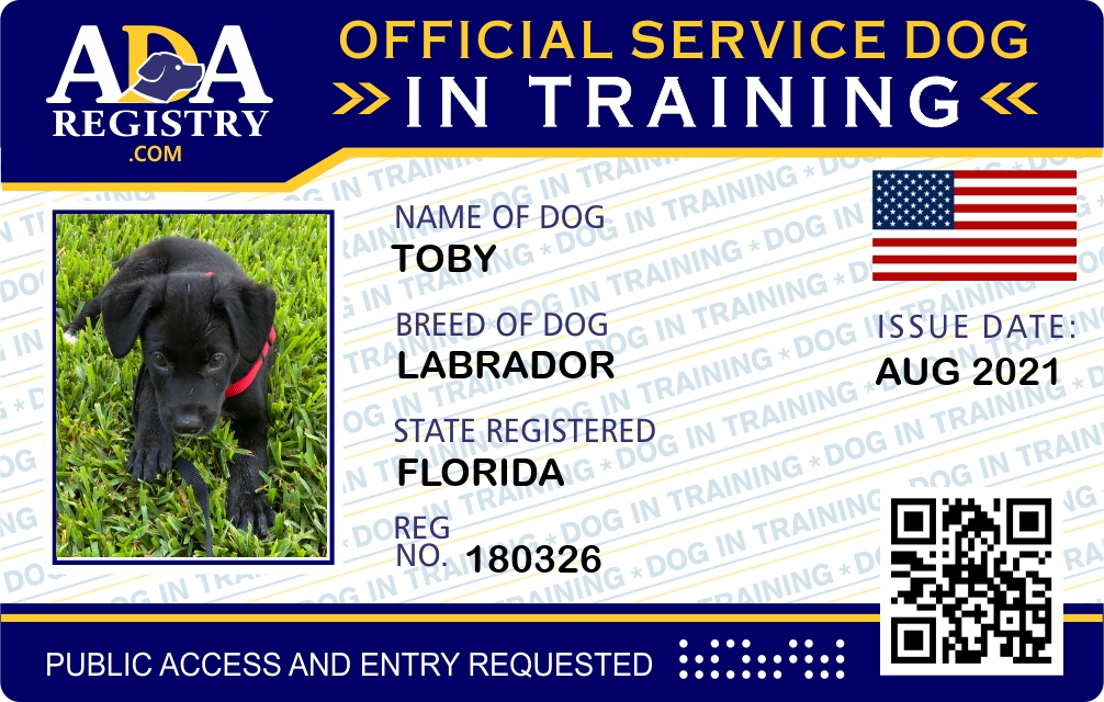 Service Dog In Training Registration for Toby
