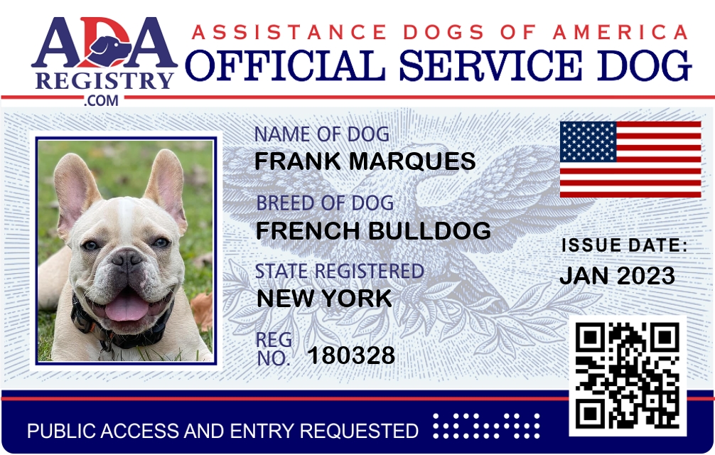 Service Dog Registration for Frank Marques