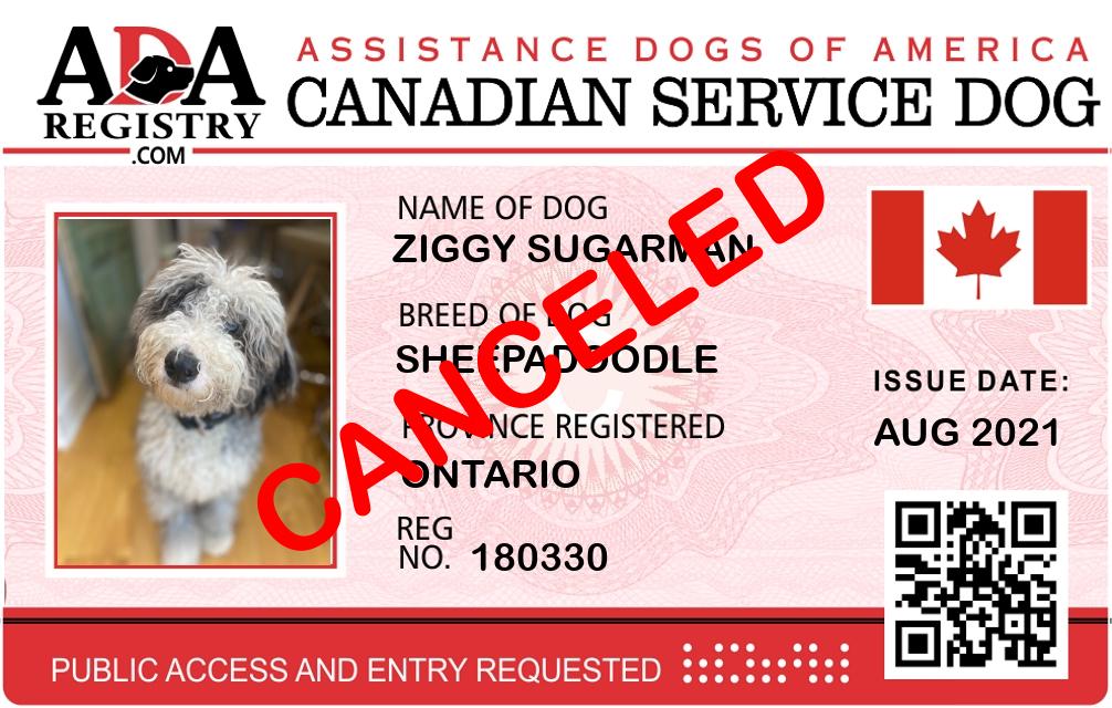 Service Dog Registration for Ziggy Sugarman