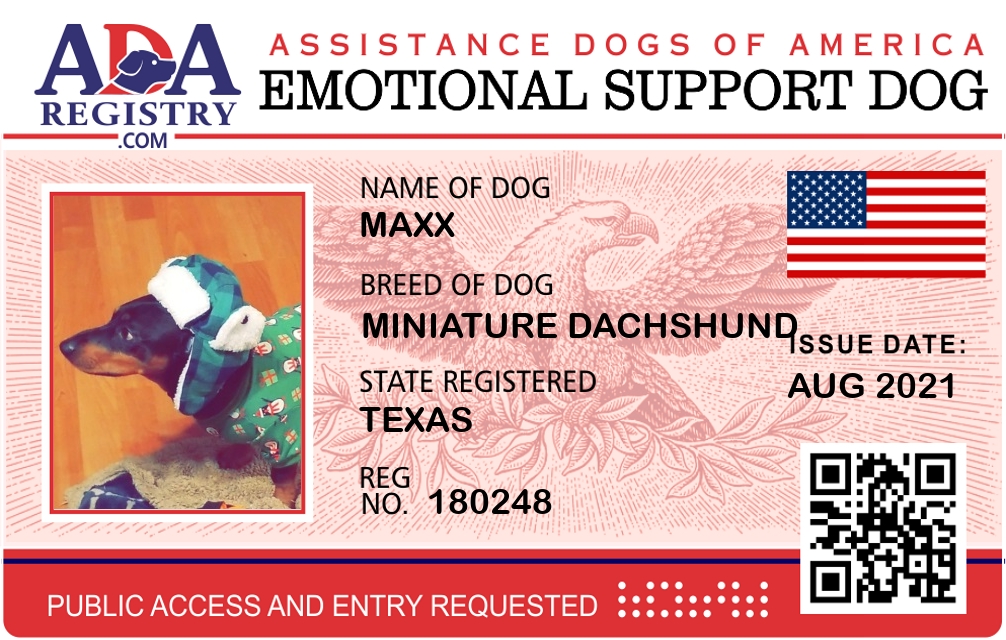Emotional Support Dog Registration for Maxx