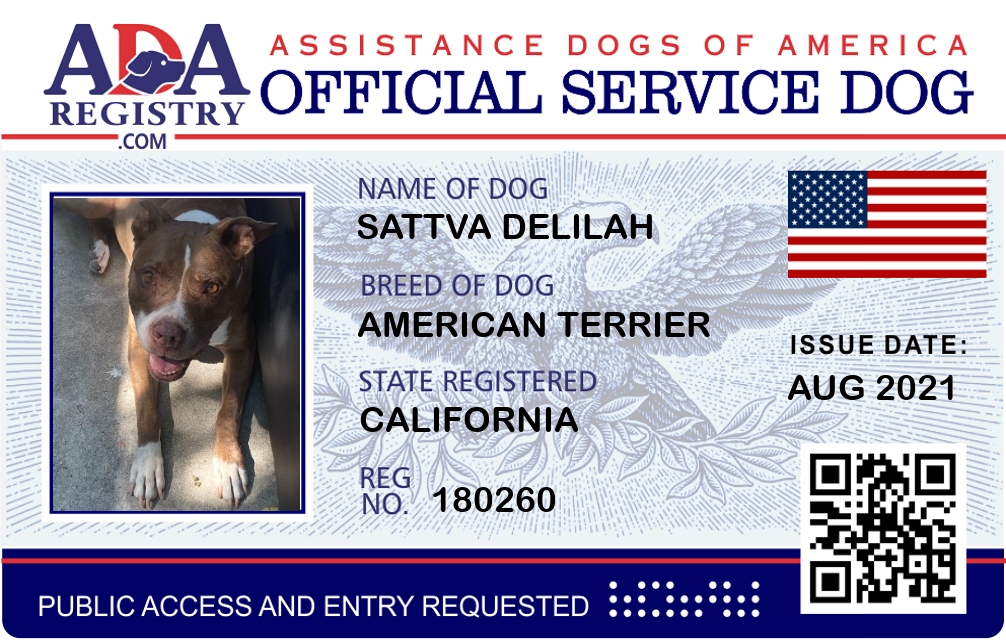 Service Dog Registration for Sattva Delilah