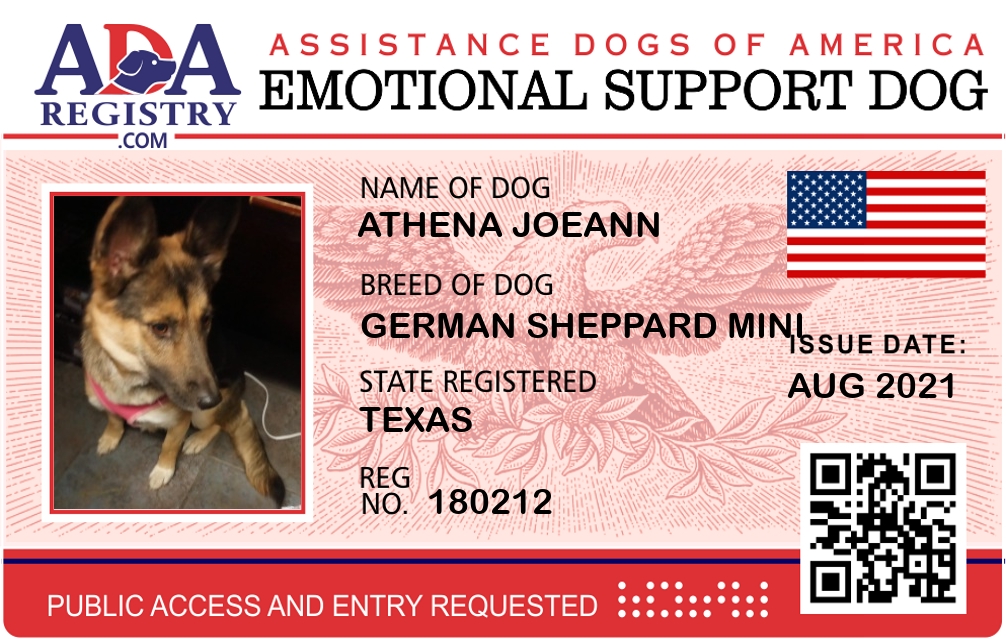 Emotional Support Dog Registration for ATHENA JOEANN