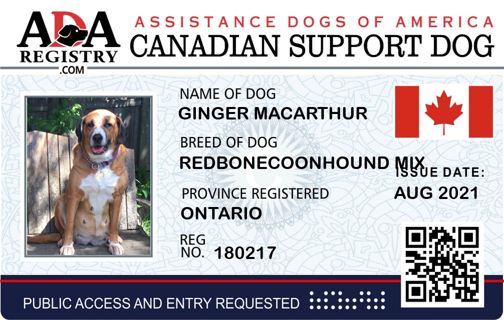 Emotional Support Dog Registration for Ginger MacArthur