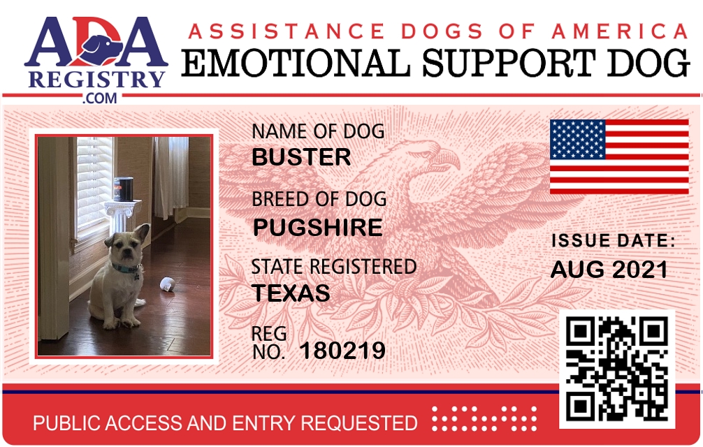 Emotional Support Dog Registration for Buster