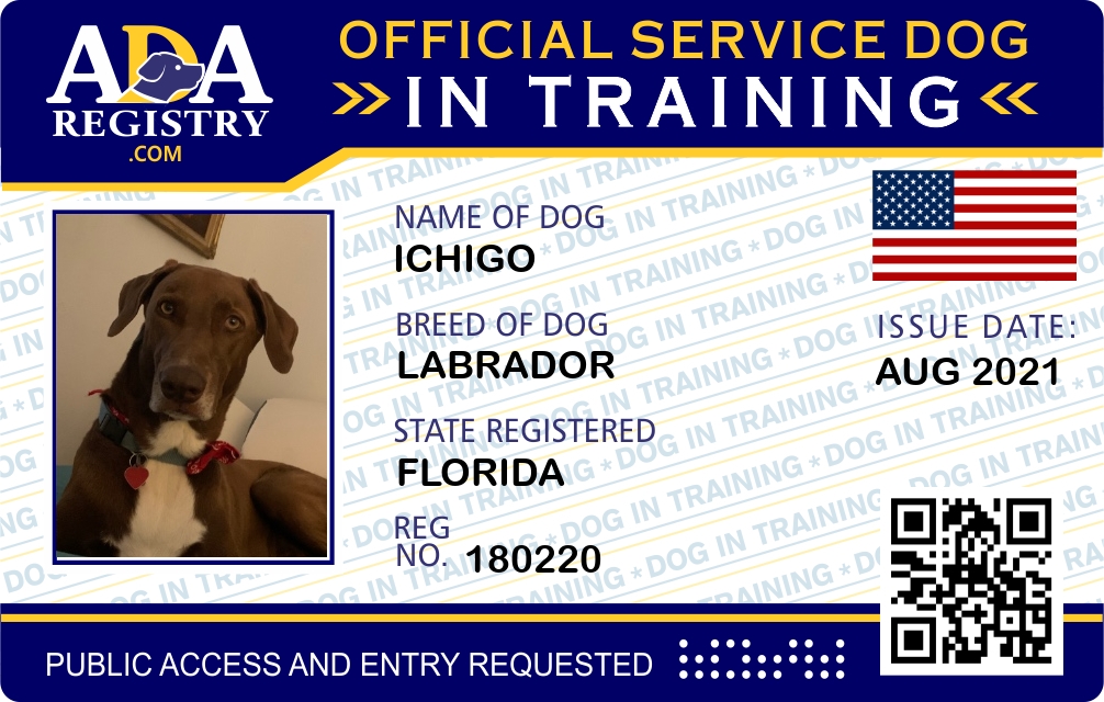 Service Dog In Training Registration for Ichigo