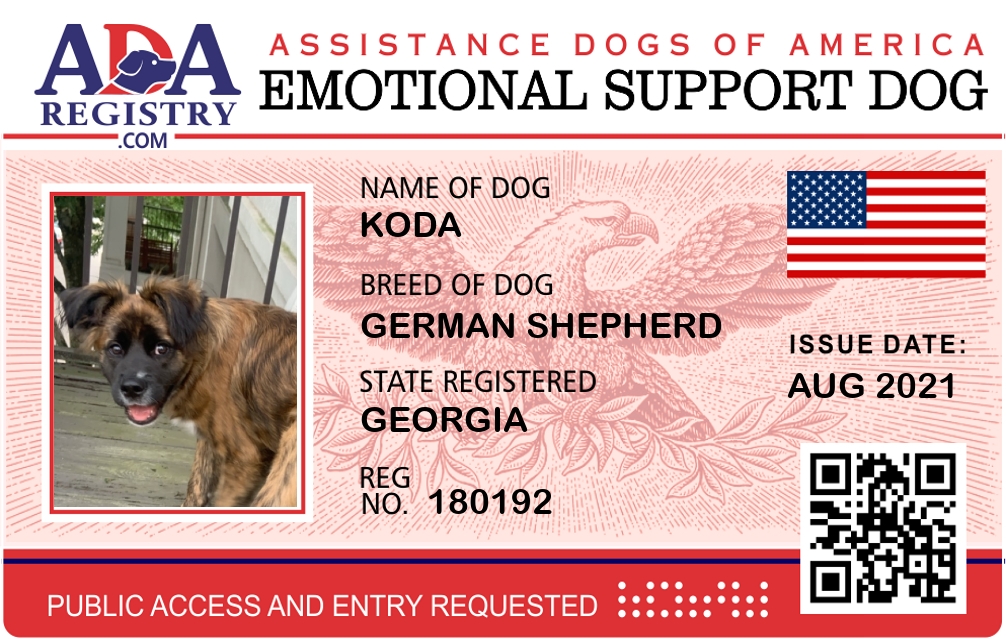 Emotional Support Dog Registration for Koda