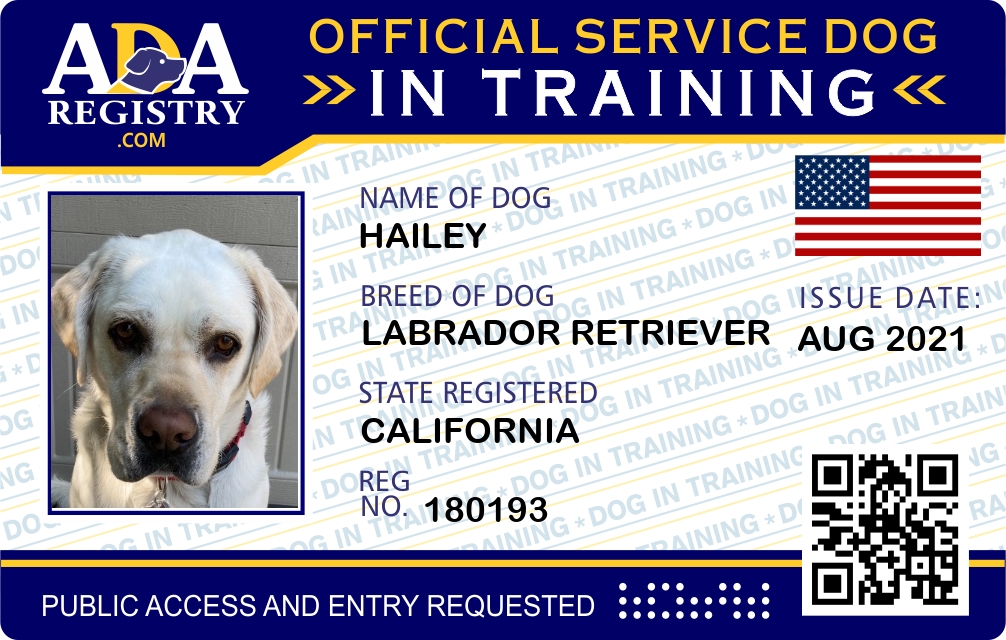 Service Dog In Training Registration for HAILEY