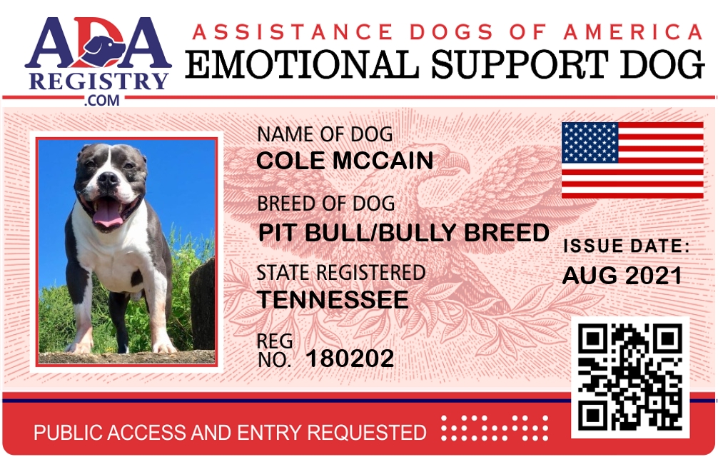 Emotional Support Dog Registration for Cole McCain