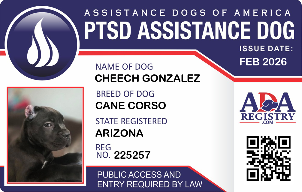 PTSD Assistance Dog Registration for Cheech Gonzalez