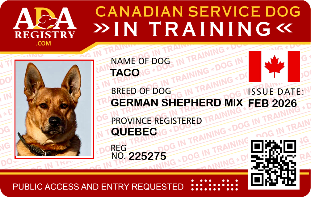 Service Dog In Training Registration for Taco
