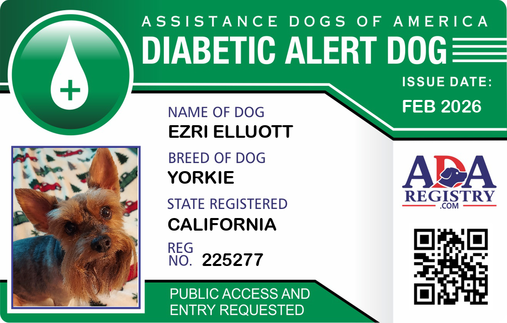 Diabetic Alert Dog Registration for Ezri Elluott