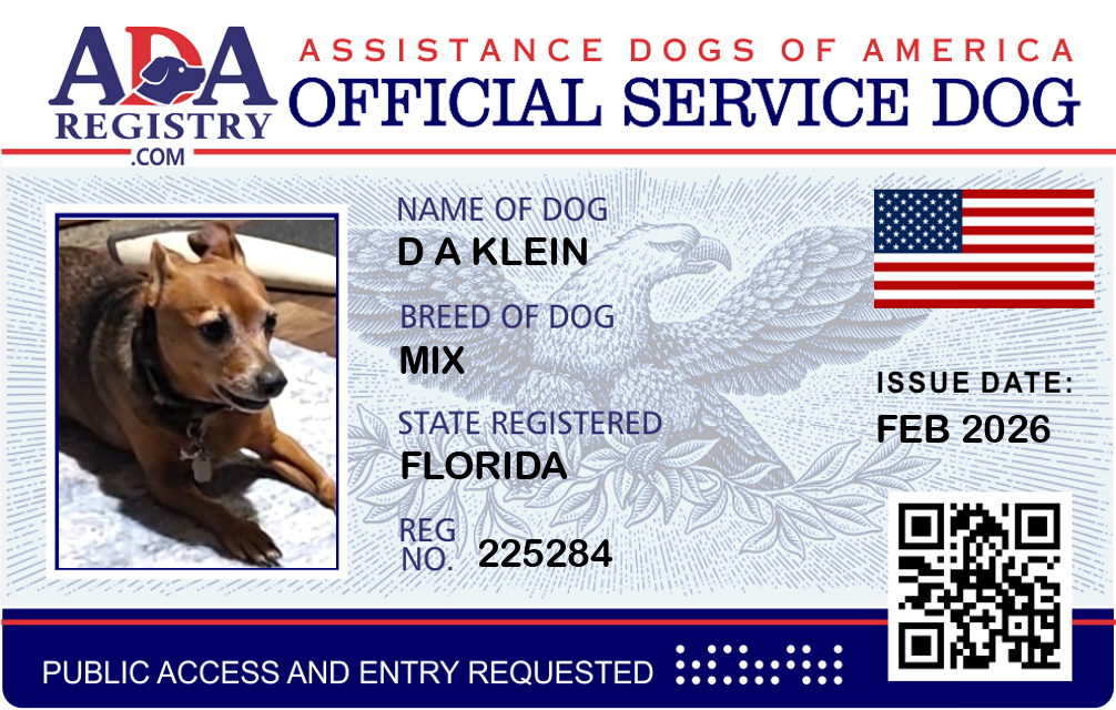 Service Dog Registration for D A Klein