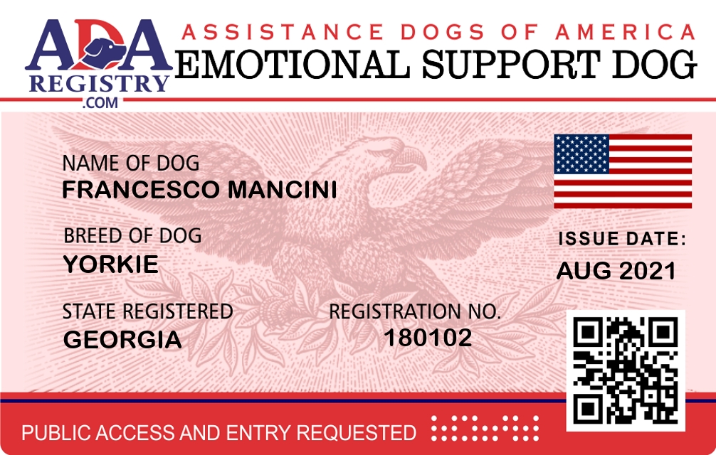 Emotional Support Dog Registration for Francesco Mancini