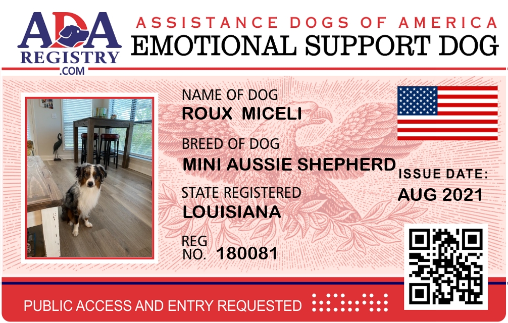 Emotional Support Dog Registration for Roux Miceli