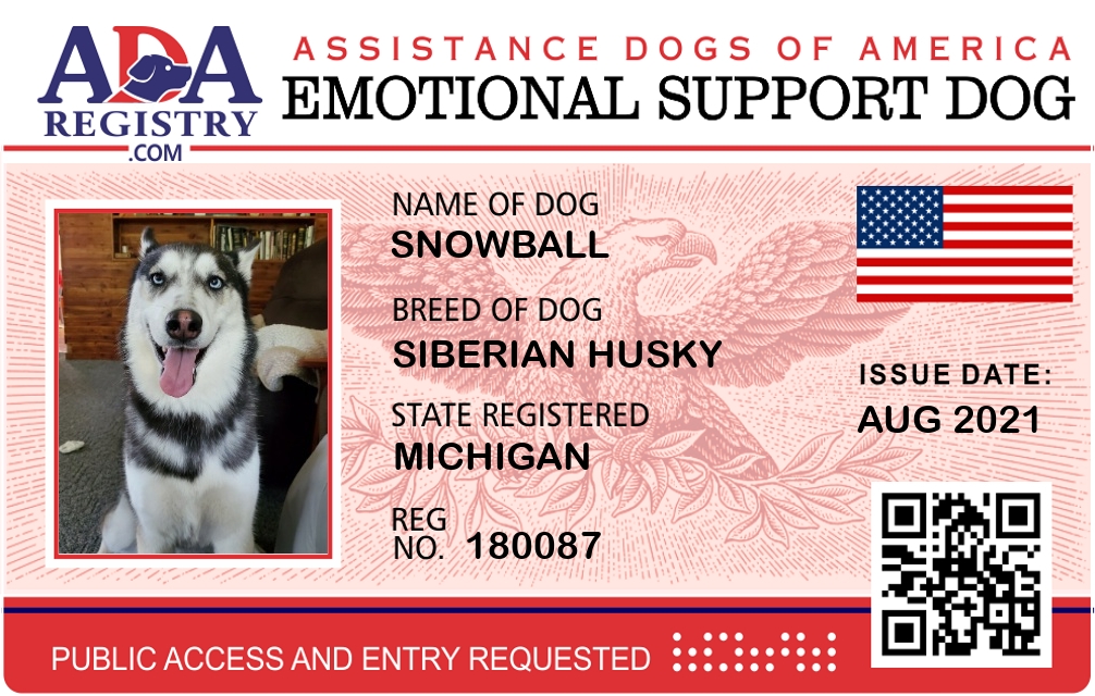 Emotional Support Dog Registration for Snowball