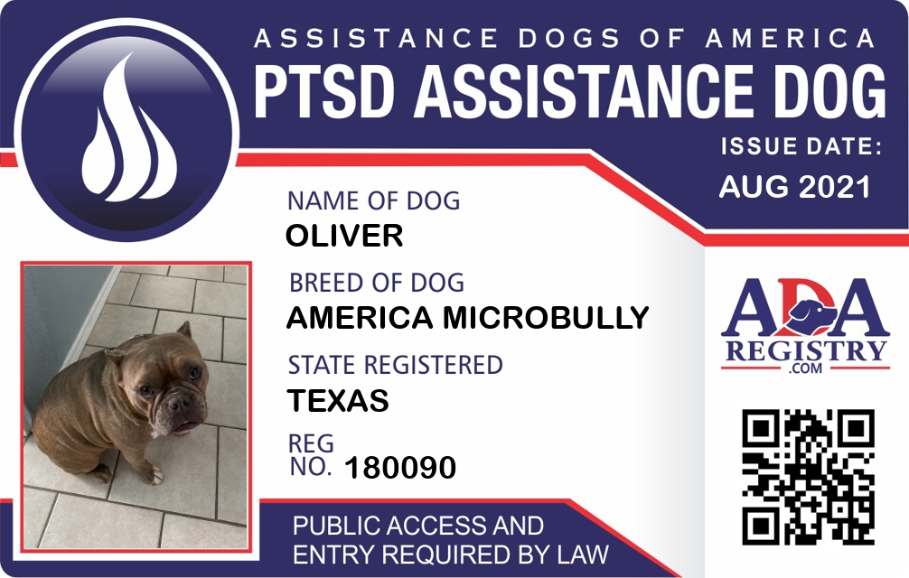 PTSD Assistance Dog Registration for Oliver