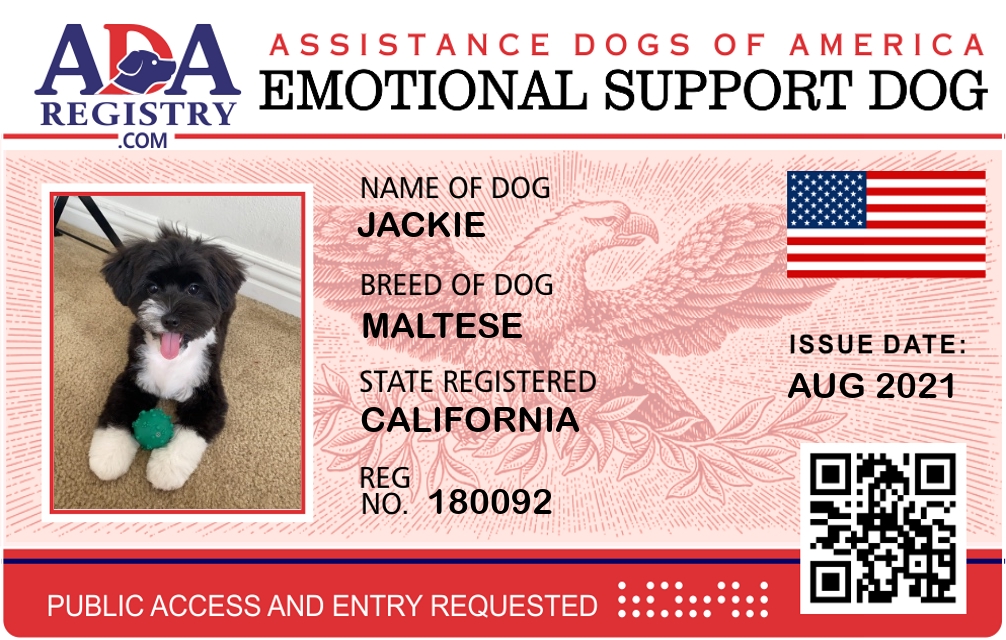 Emotional Support Dog Registration for Jackie
