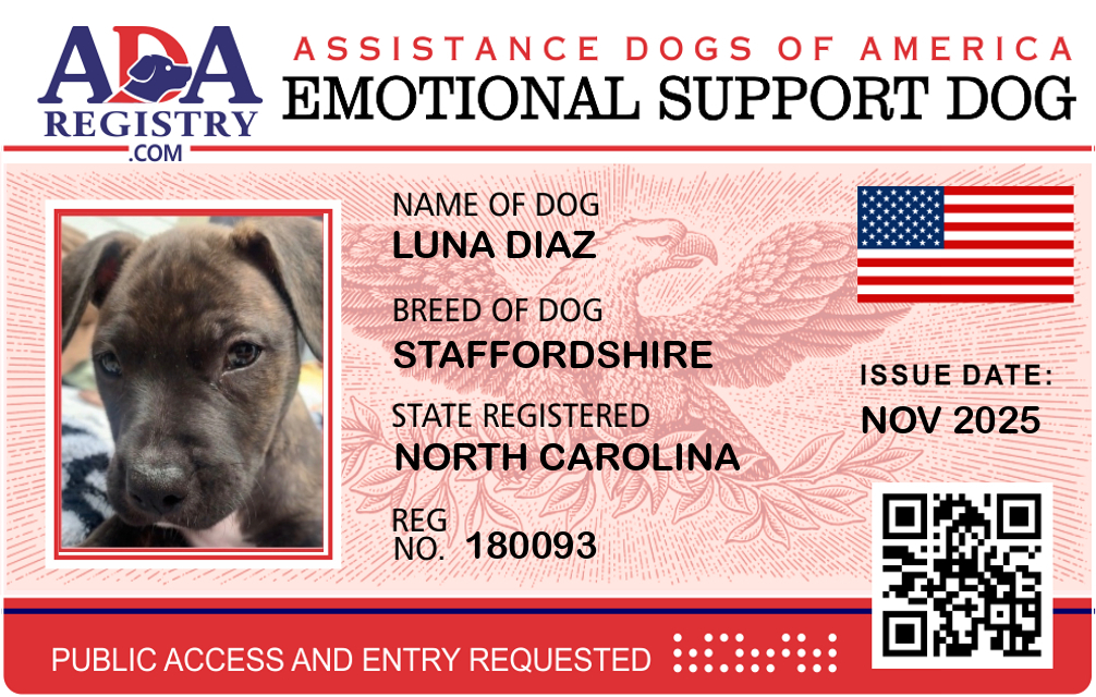 Emotional Support Dog Registration for Luna Diaz