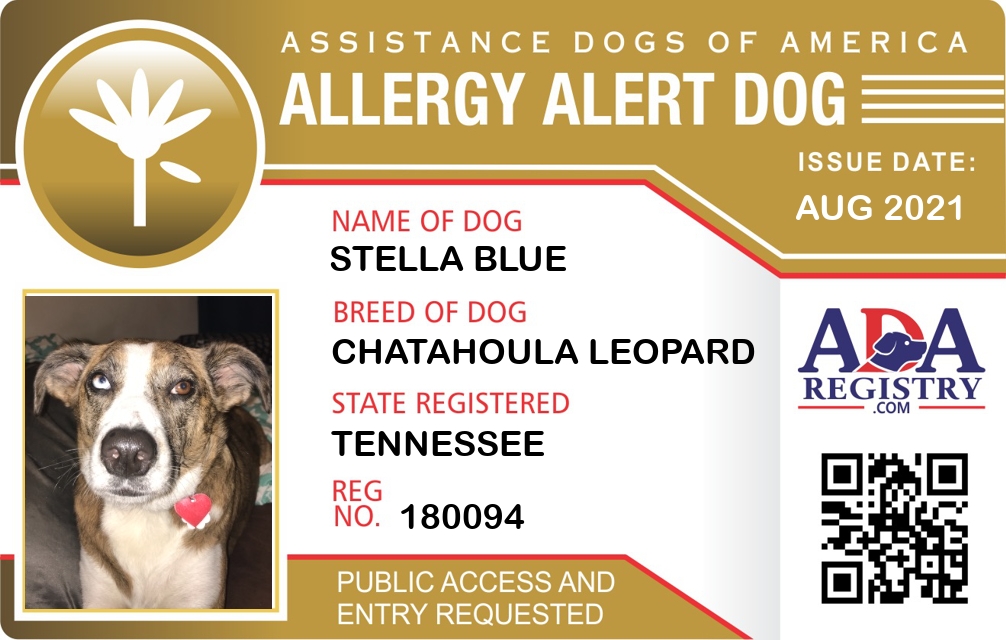 Allergy Alert Dog Registration for Stella Blue