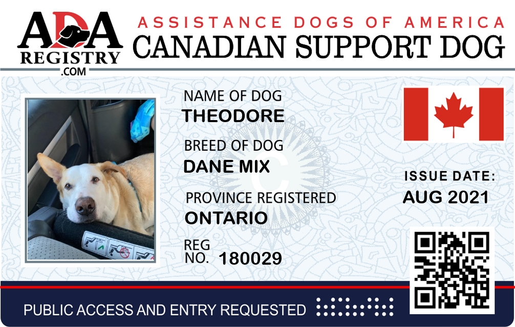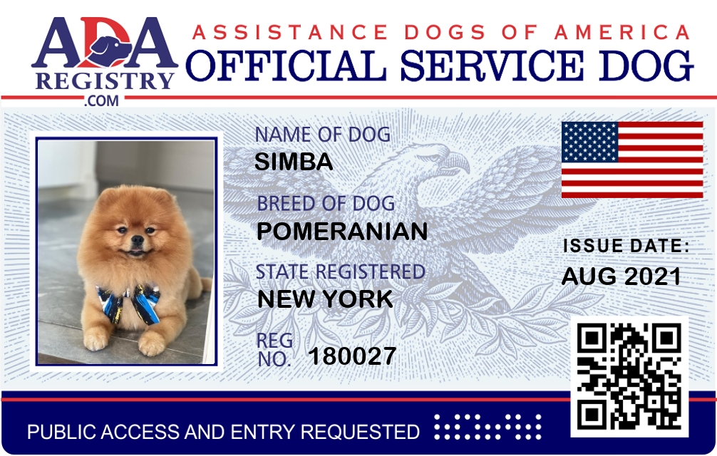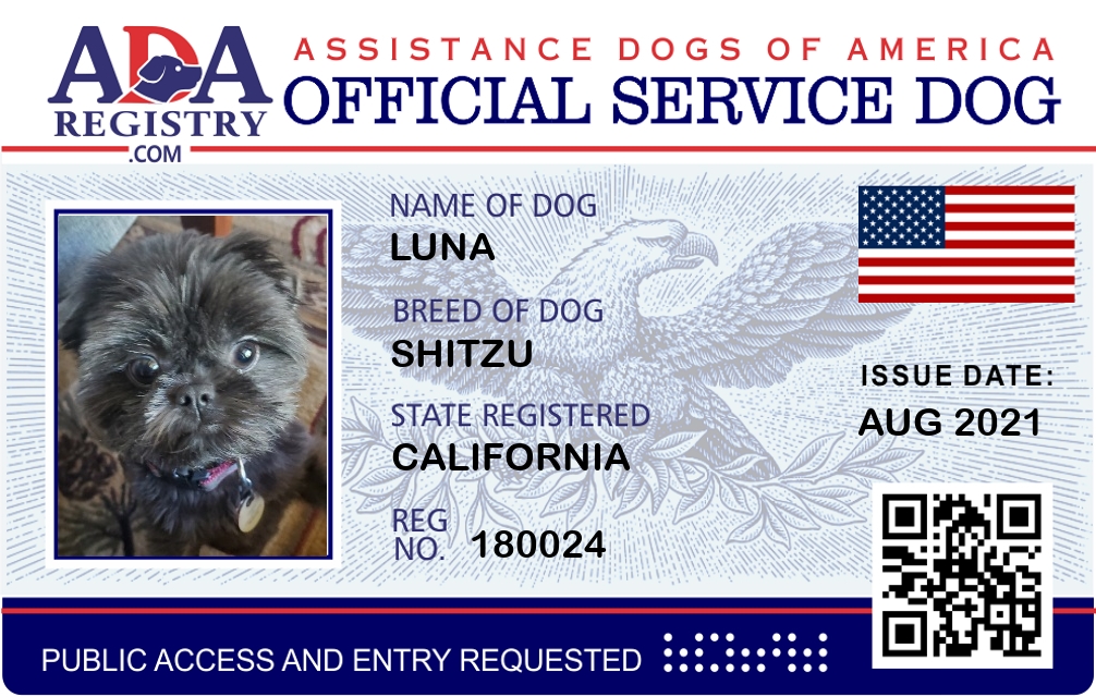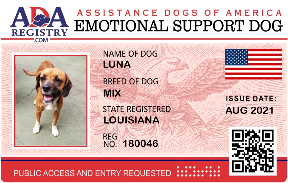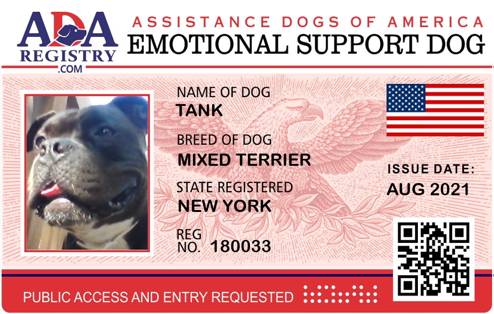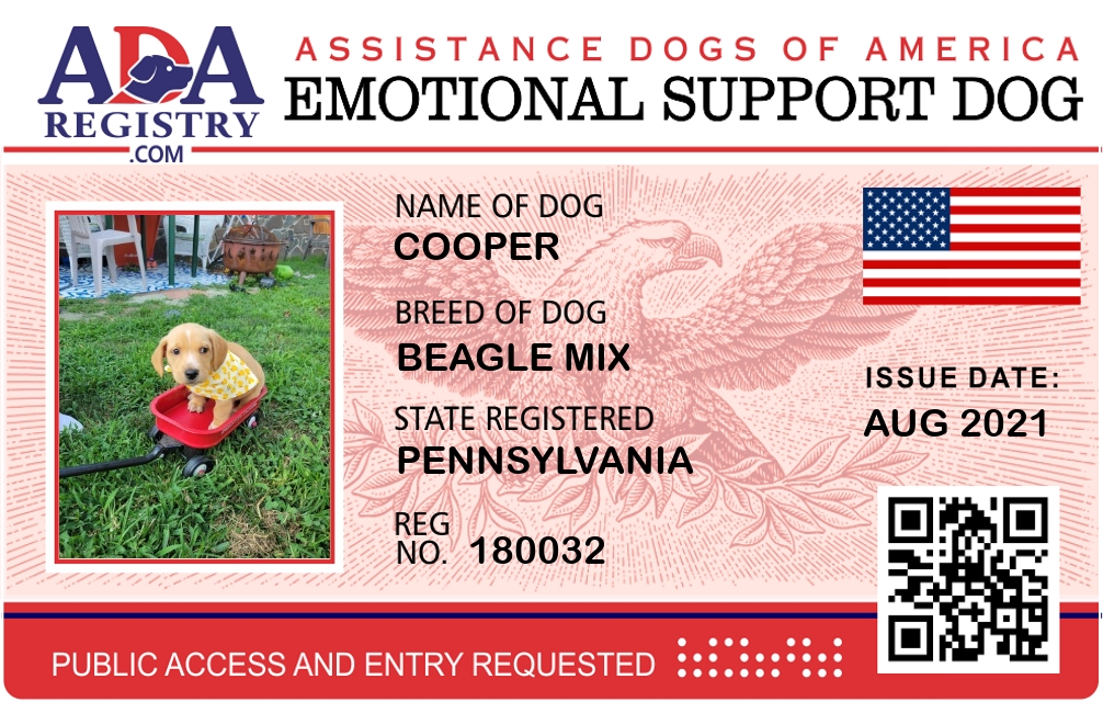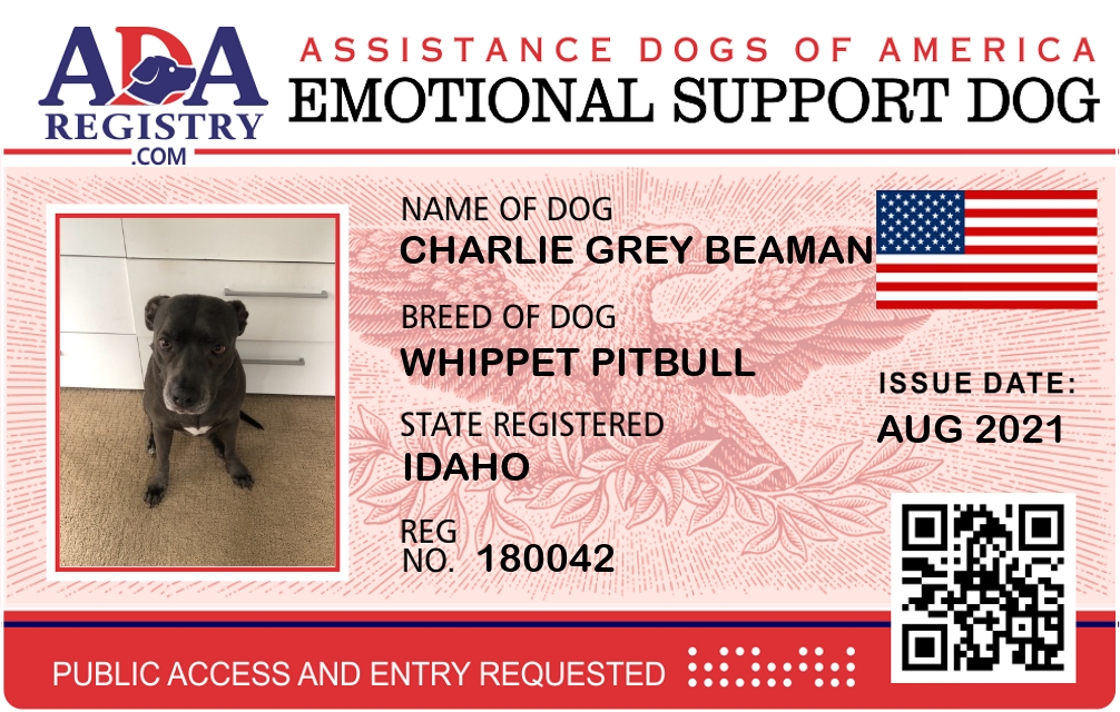 Emotional Support Dog Registration for Charlie Grey Beaman