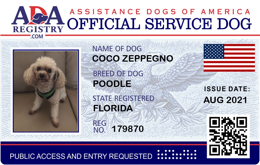 Service Dog Registration for Coco Zeppegno