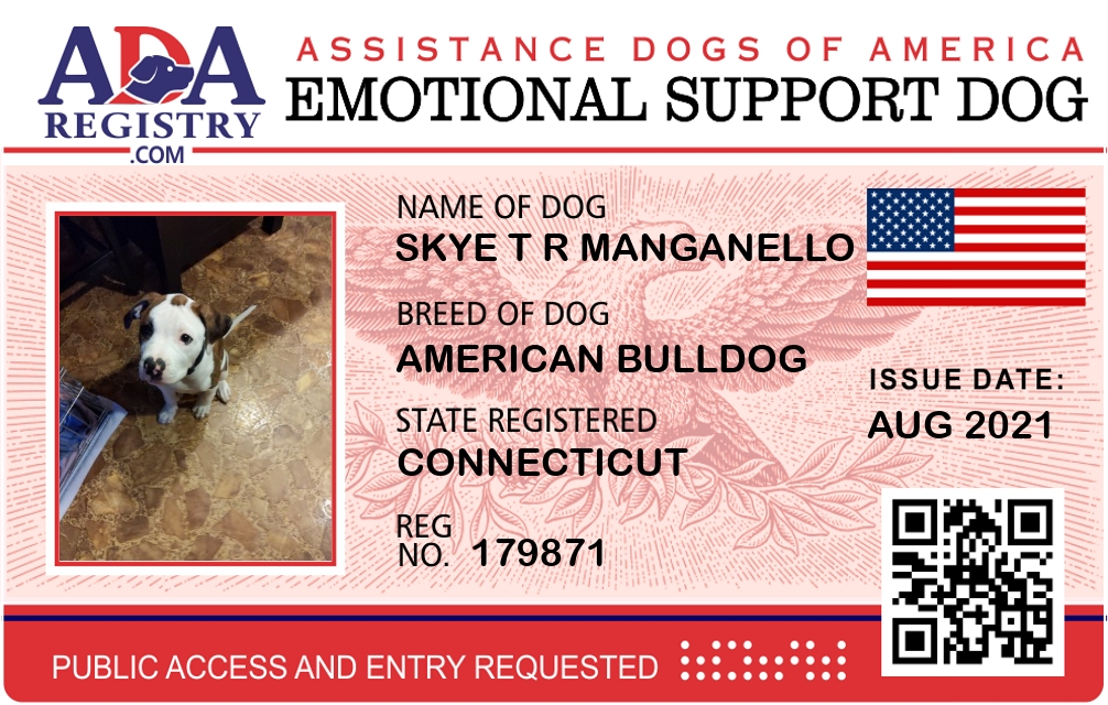 Emotional Support Dog Registration for Skye T R Manganello