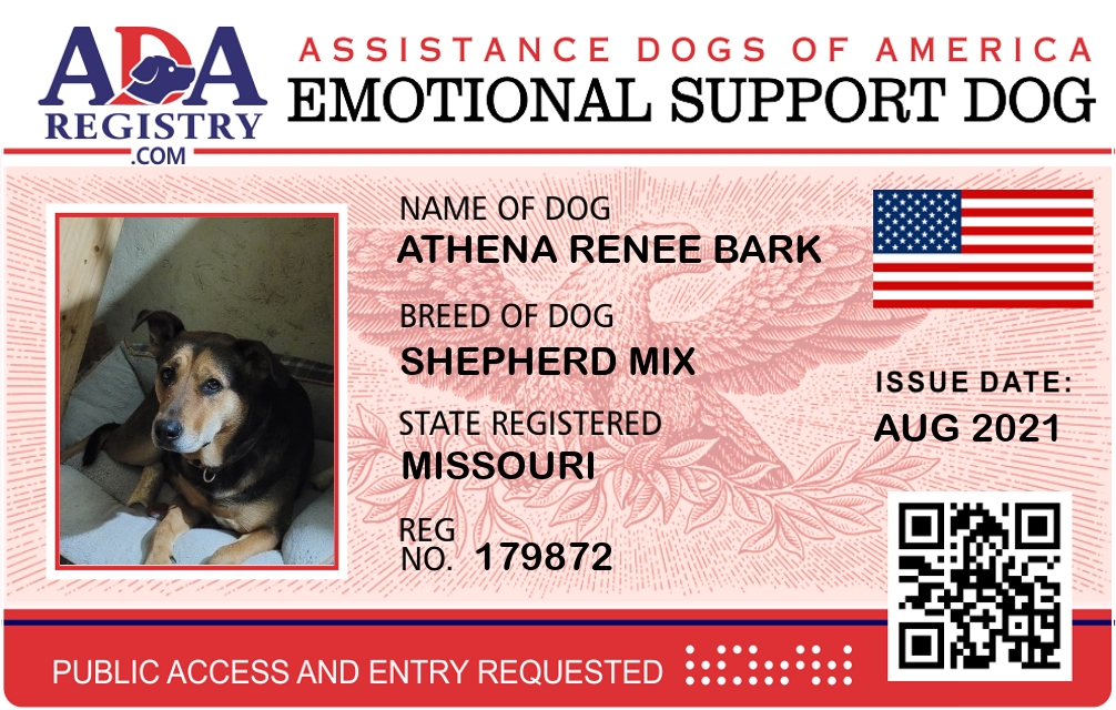 Emotional Support Dog Registration for Athena Renee Bark