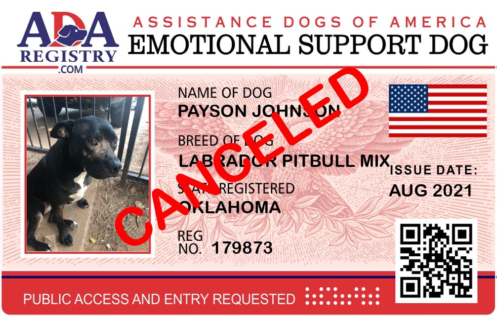 Emotional Support Dog Registration for Payson Johnson