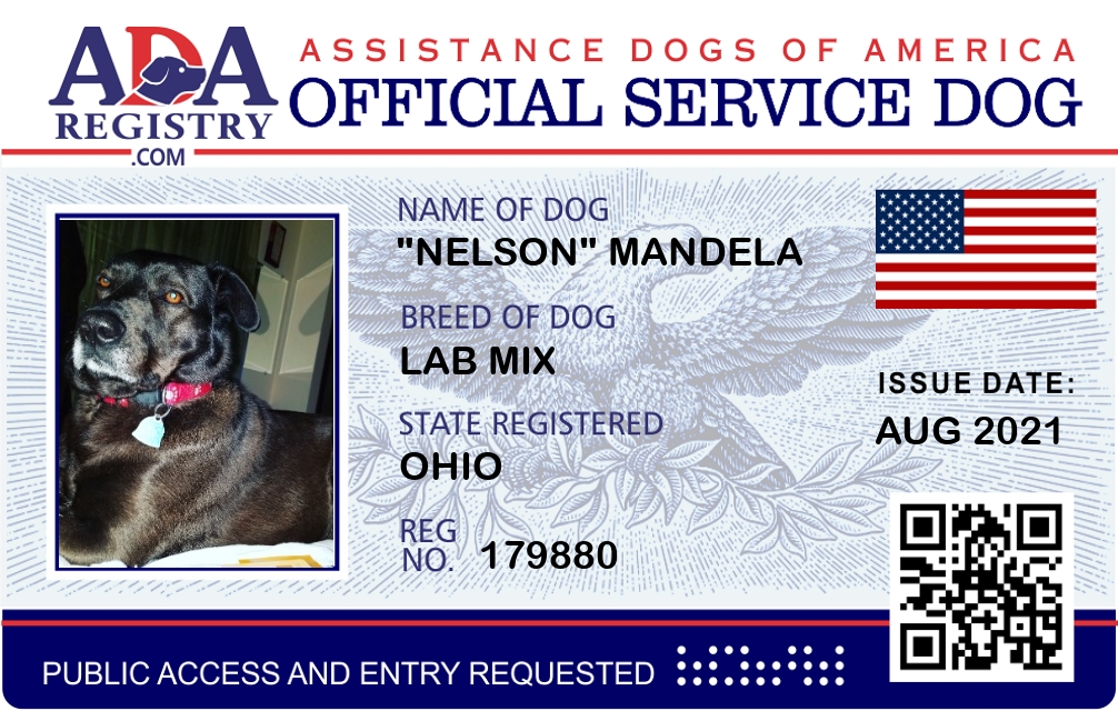 Service Dog Registration for "Nelson" Mandela