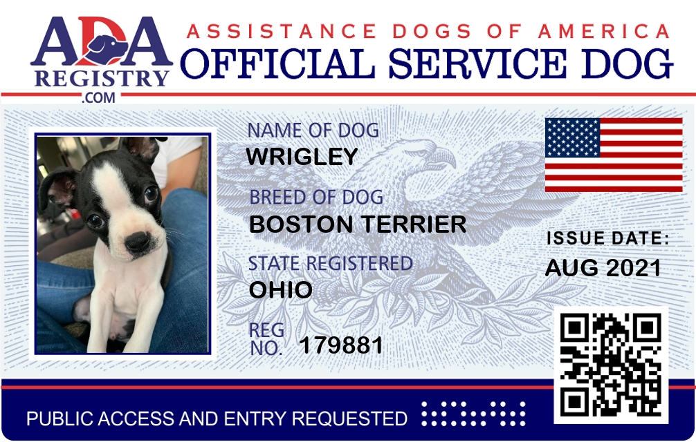 Service Dog Registration for Wrigley