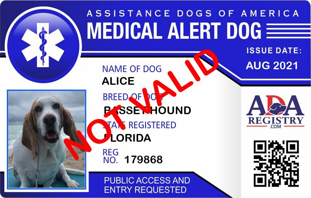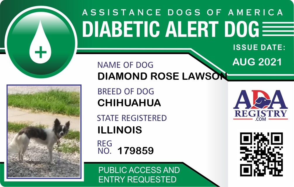 Diabetic Alert Dog Registration for Diamond Rose Lawson