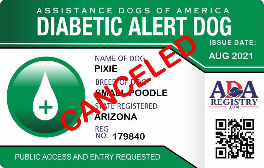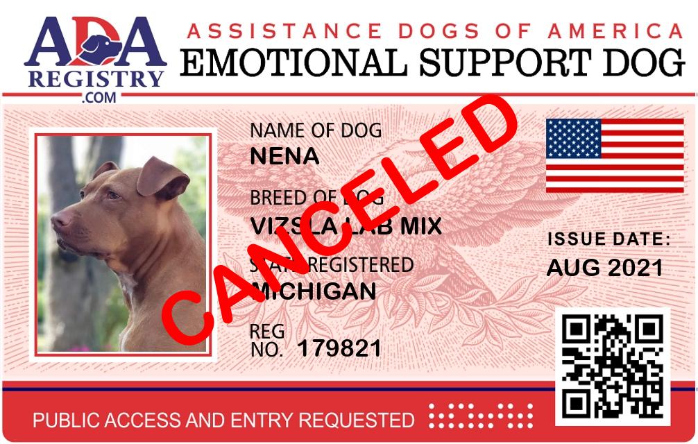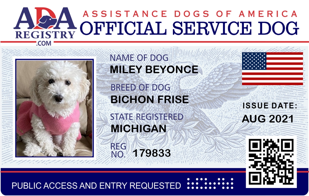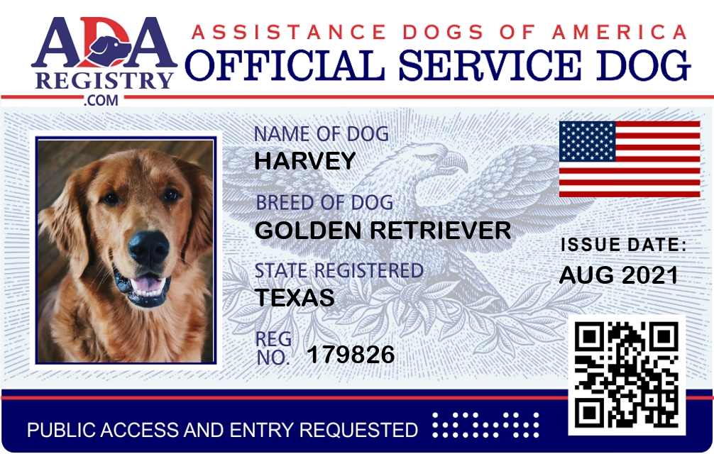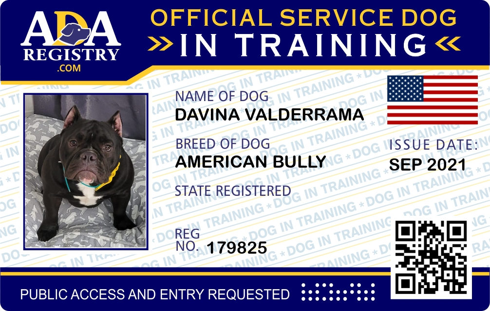 Service Dog In Training Registration for DAVINA VALDERRAMA
