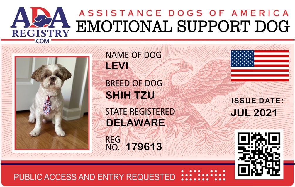 Emotional Support Dog Registration for Levi