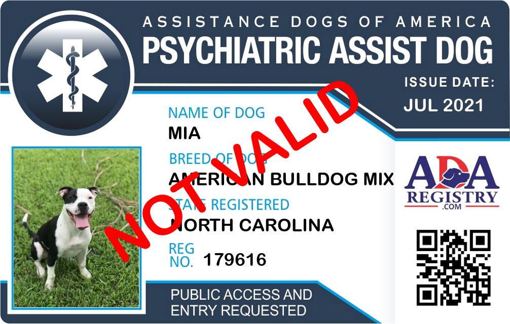Psychiatric Service Dog Registration for Mia