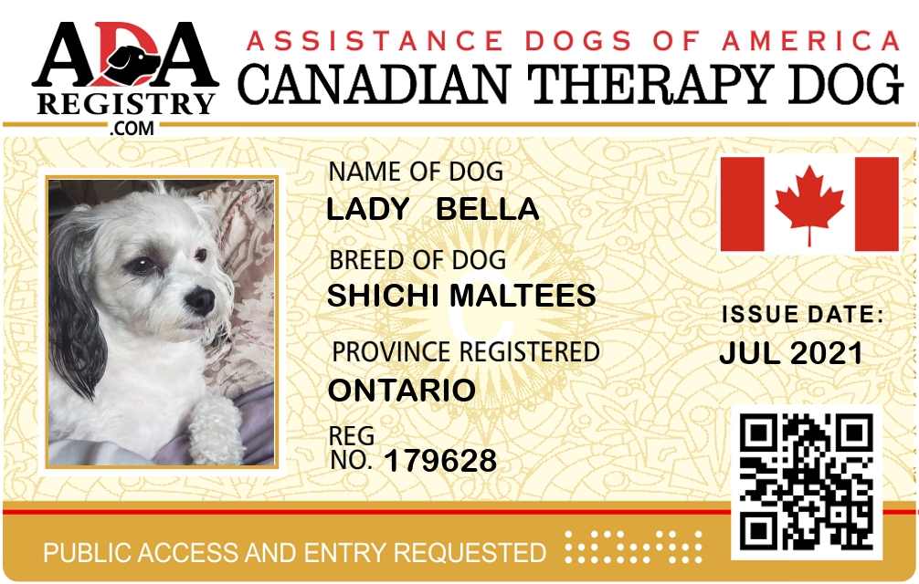 Therapy Dog Registration for Lady Bella