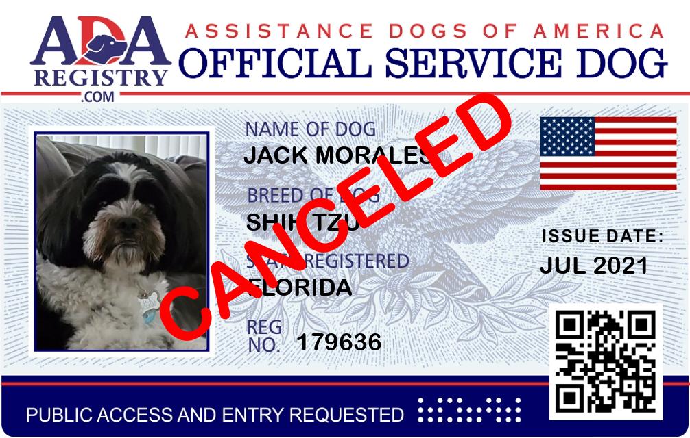 Service Dog Registration for jack Morales