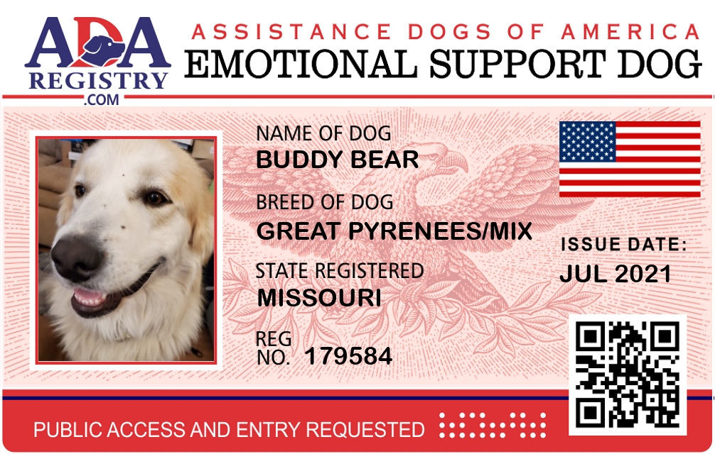 Emotional Support Dog Registration for Buddy Bear