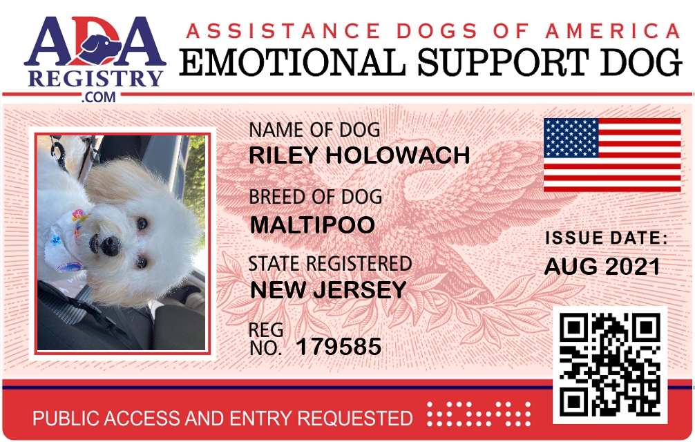 Emotional Support Dog Registration for Riley Holowach