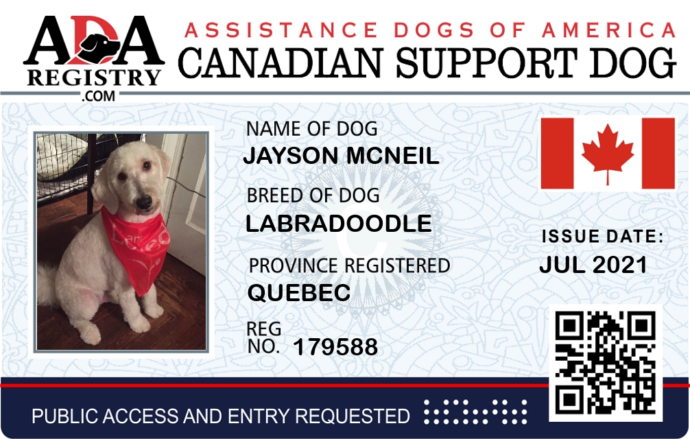 Emotional Support Dog Registration for Jayson Mcneil