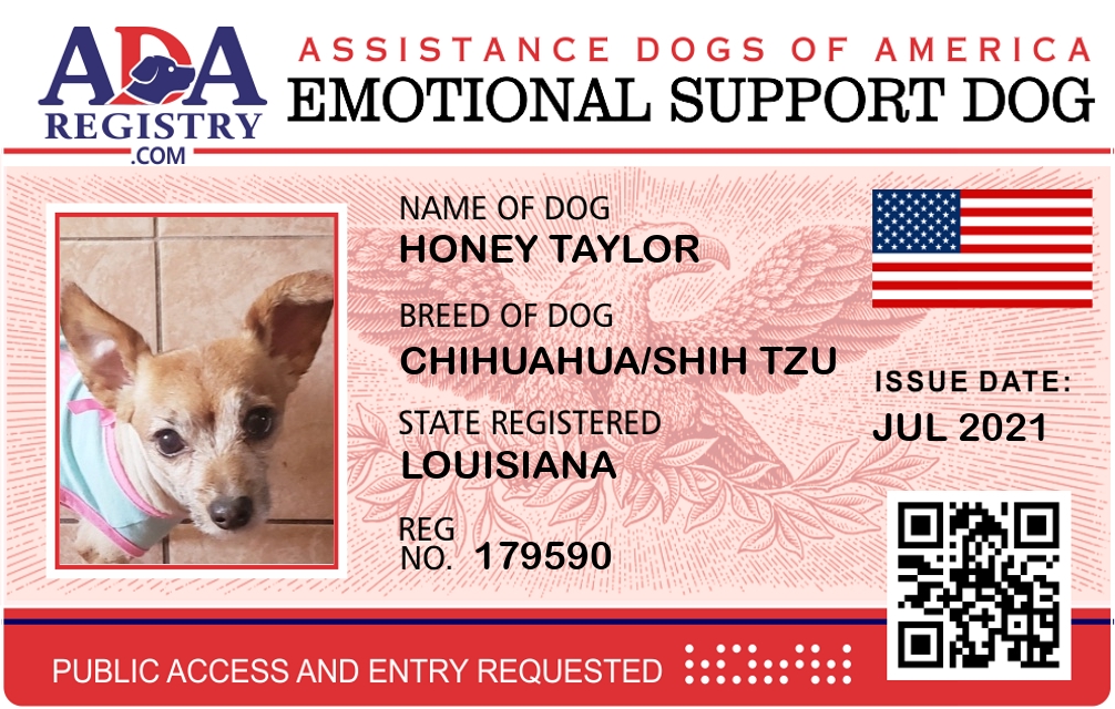Emotional Support Dog Registration for Honey Taylor