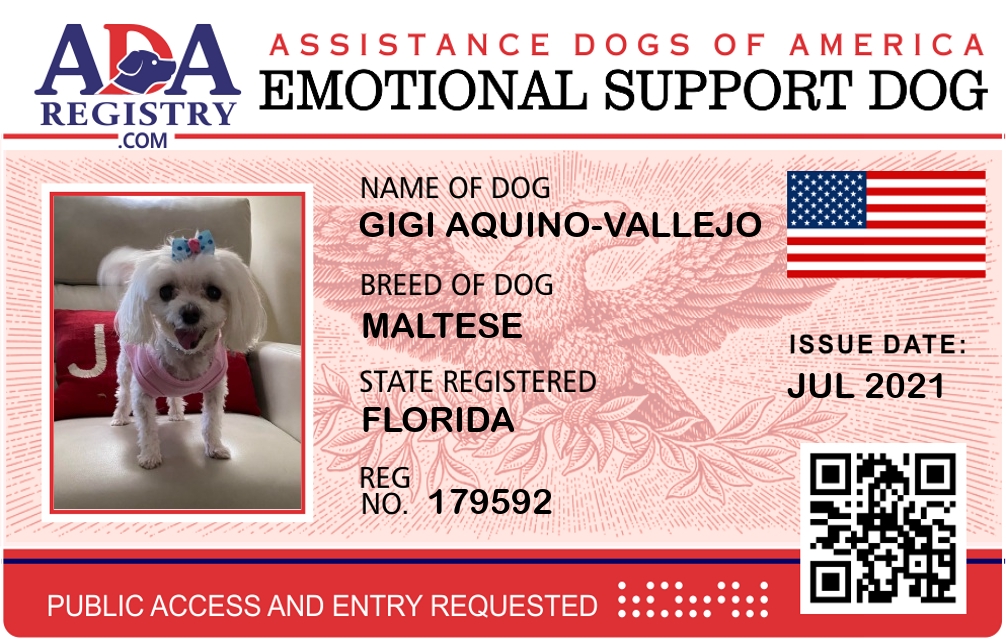 Emotional Support Dog Registration for GIGI AQUINO-VALLEJO