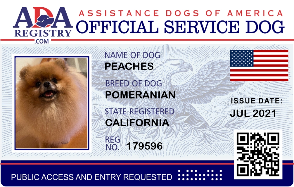 Service Dog Registration for Peaches