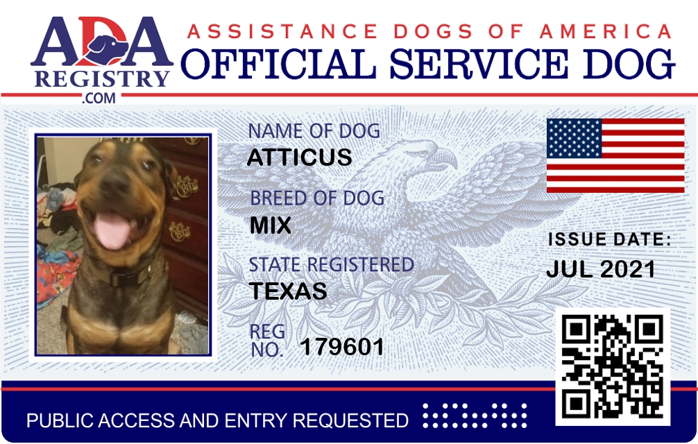 Service Dog Registration for Atticus