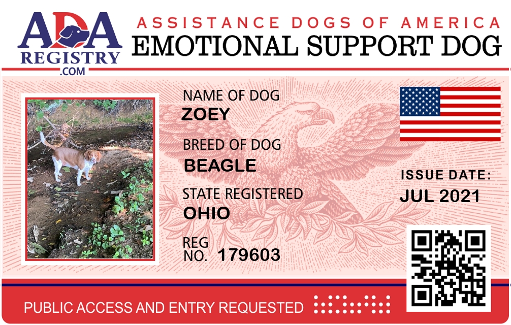 Emotional Support Dog Registration for Zoey