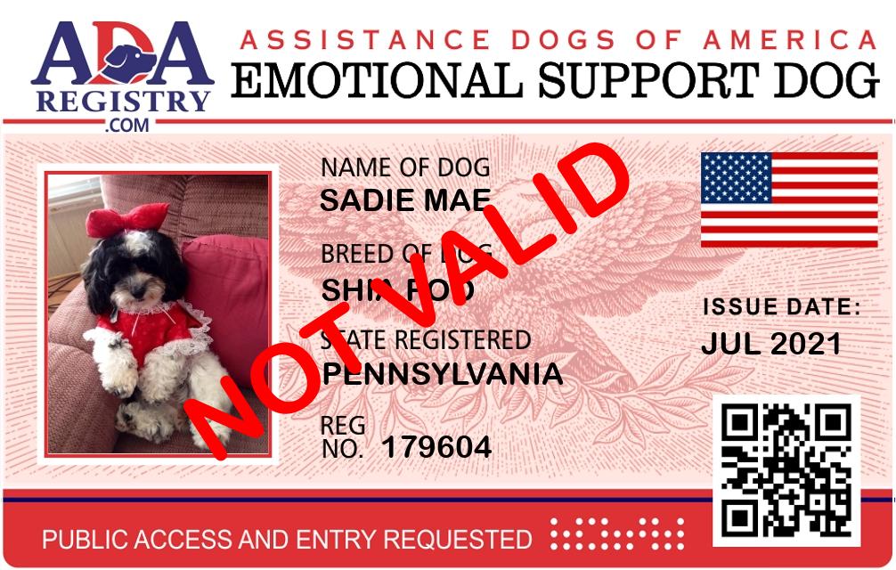 Emotional Support Dog Registration for Sadie Mae