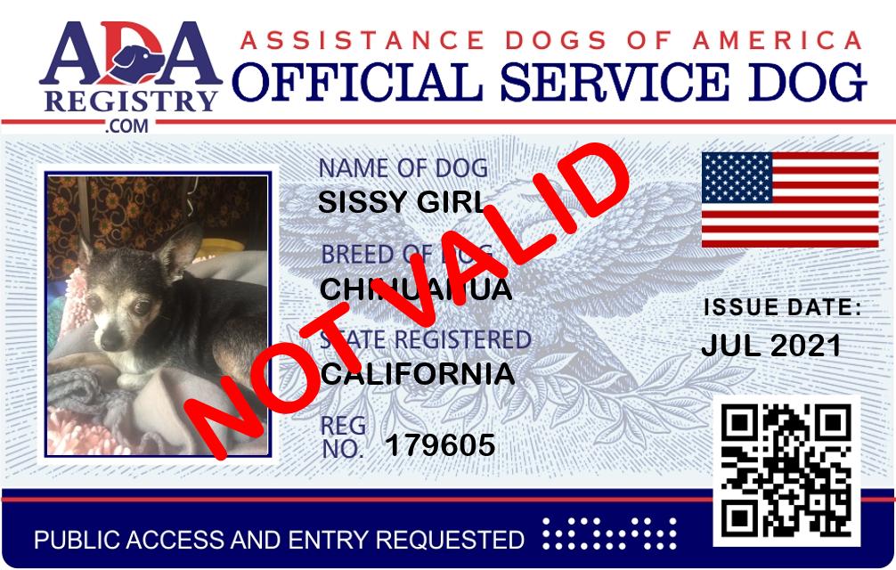 Service Dog Registration for Sissy girl