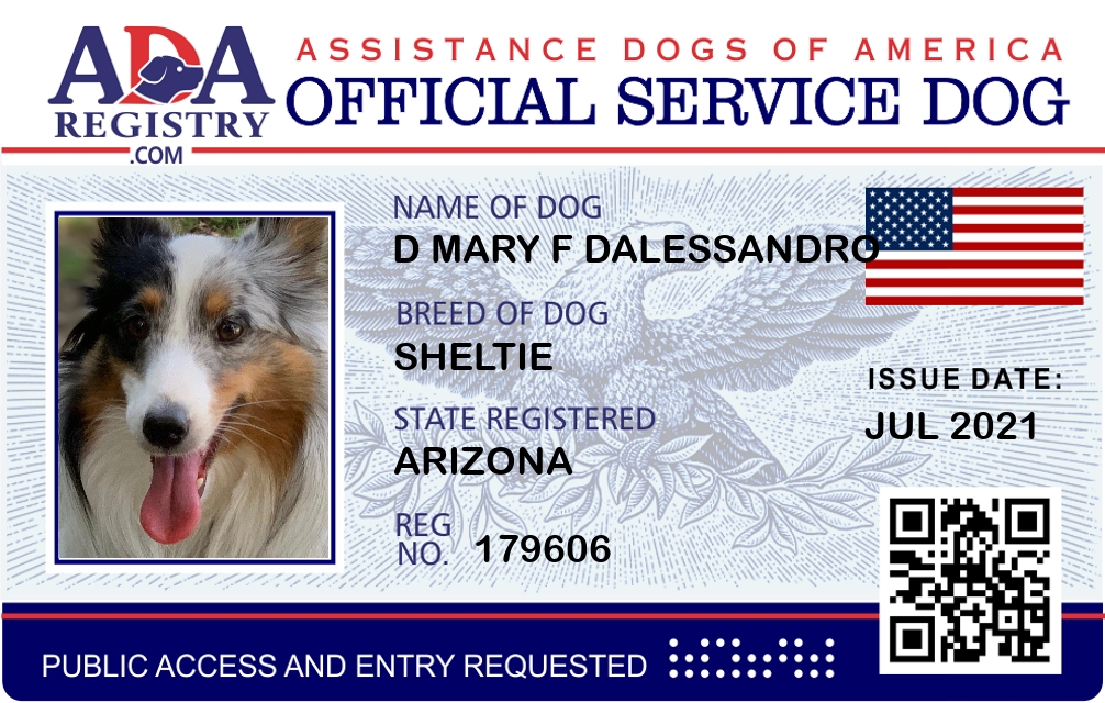 Service Dog Registration for D Mary F Dalessandro