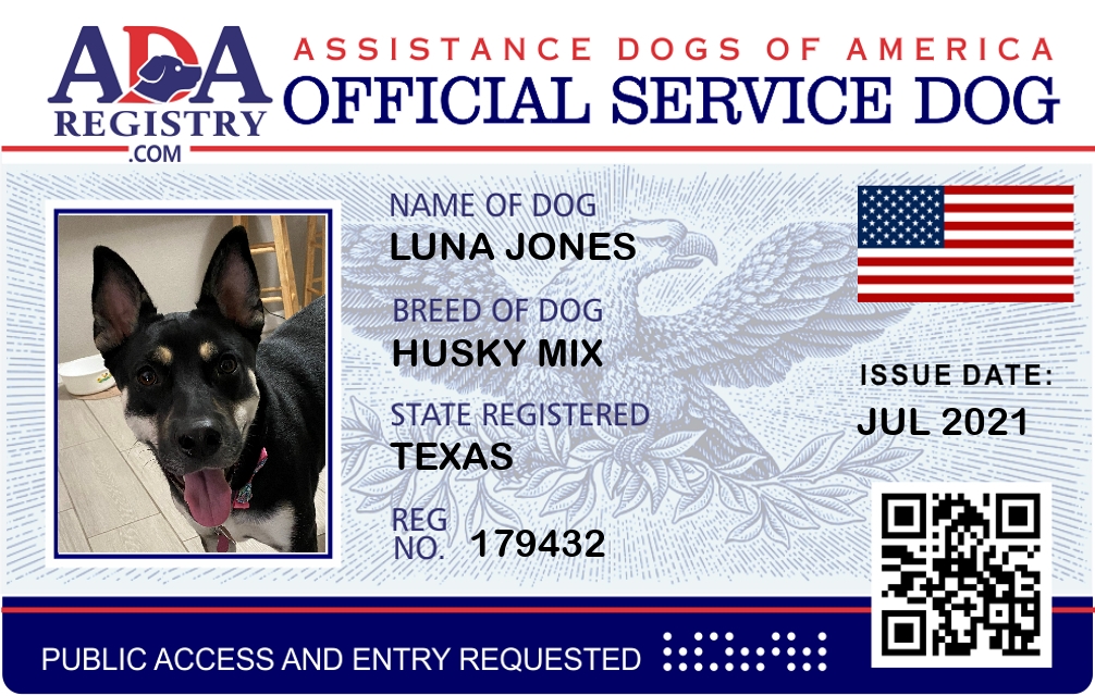 Service Dog Registration for Luna Jones